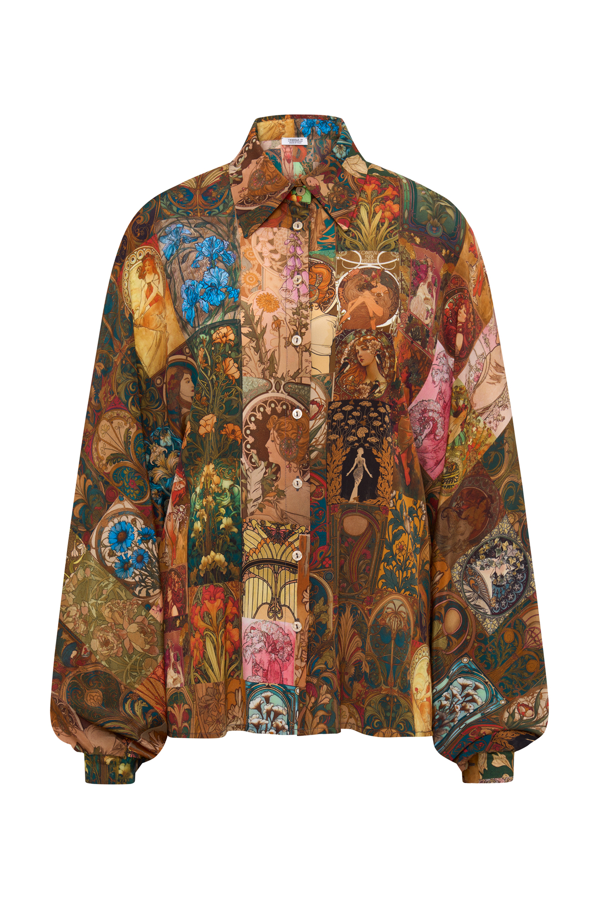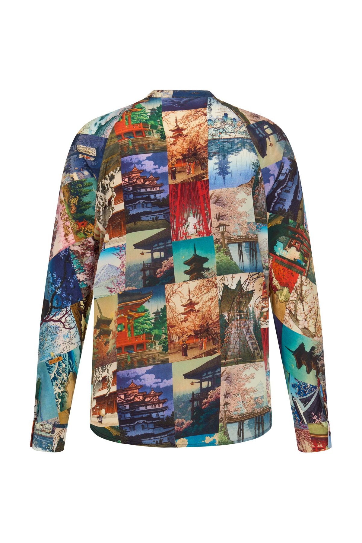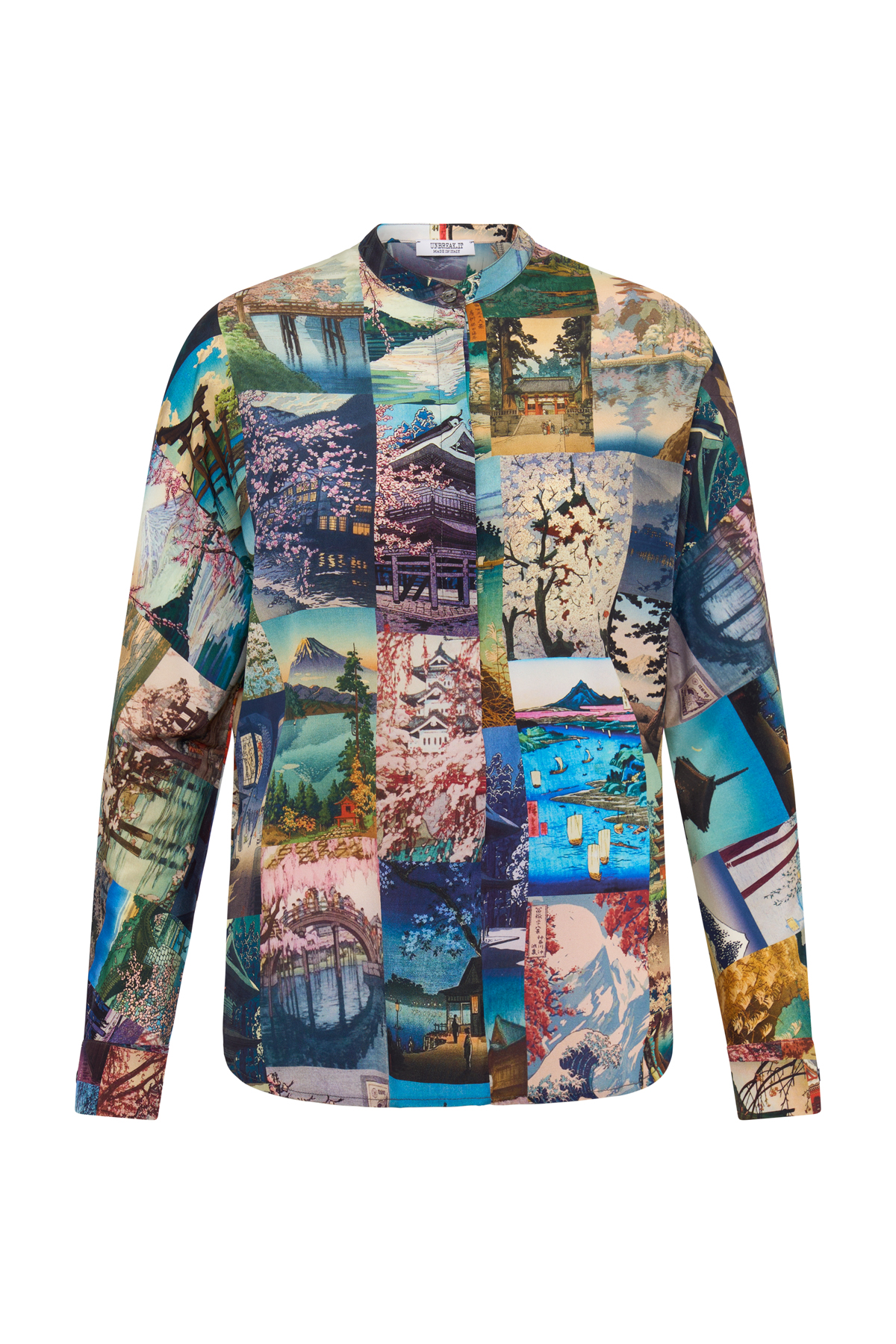 Blouse in print – Blouse with long sleeves – stand-up collar – Regular fit – Made in Italy – Silk: 96% Silk 4% Elastan
