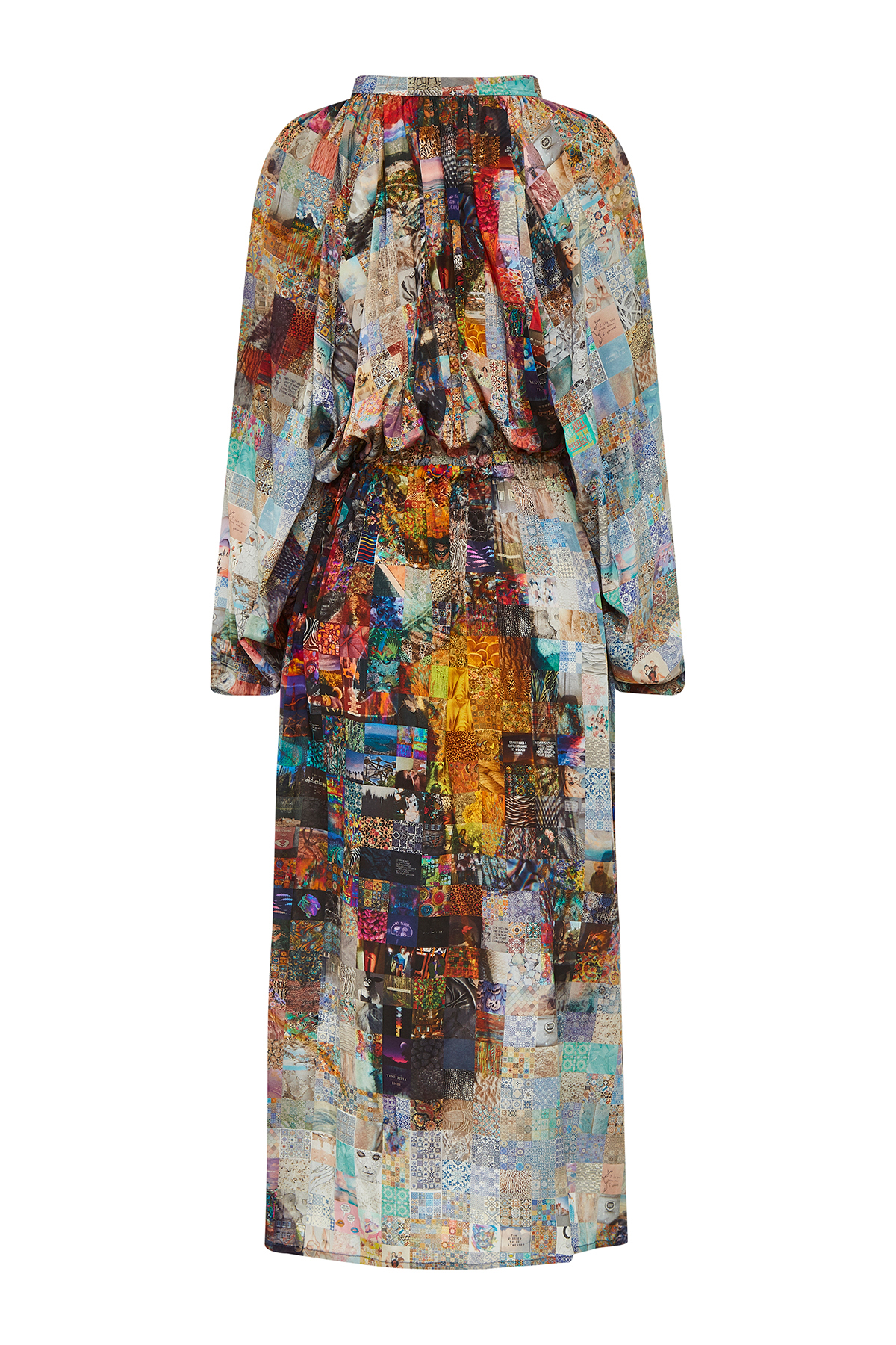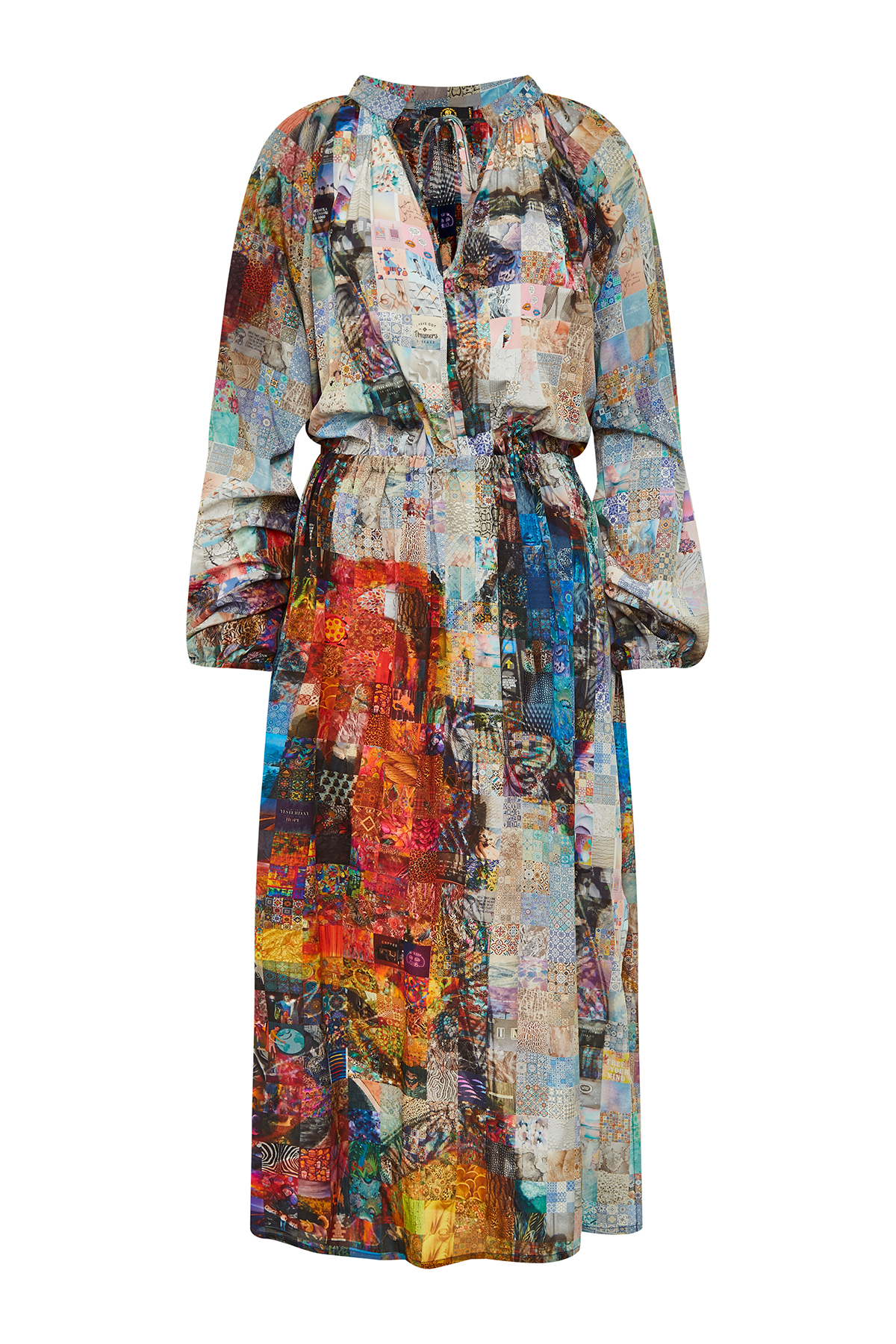 Dress WITH A PRINT – V-neck – Batwing sleeves – airy skirt – Relaxed fit – Falls loosely over the body – Made in Italy – 10% Elastan 90% Silk