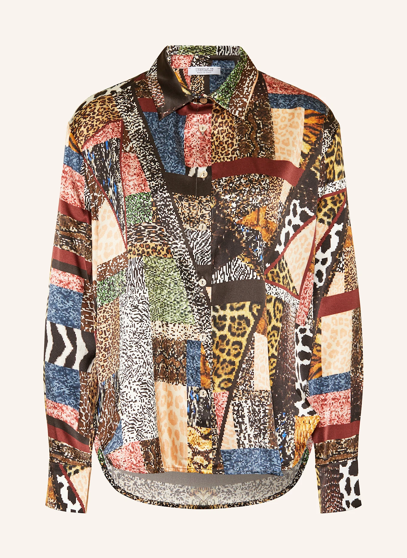Blouse with a print – Blouse with long sleeves – High neckline with a collar – Regular fit – Made in Italy – Matt Silk: 90% Silk 10% Elastan