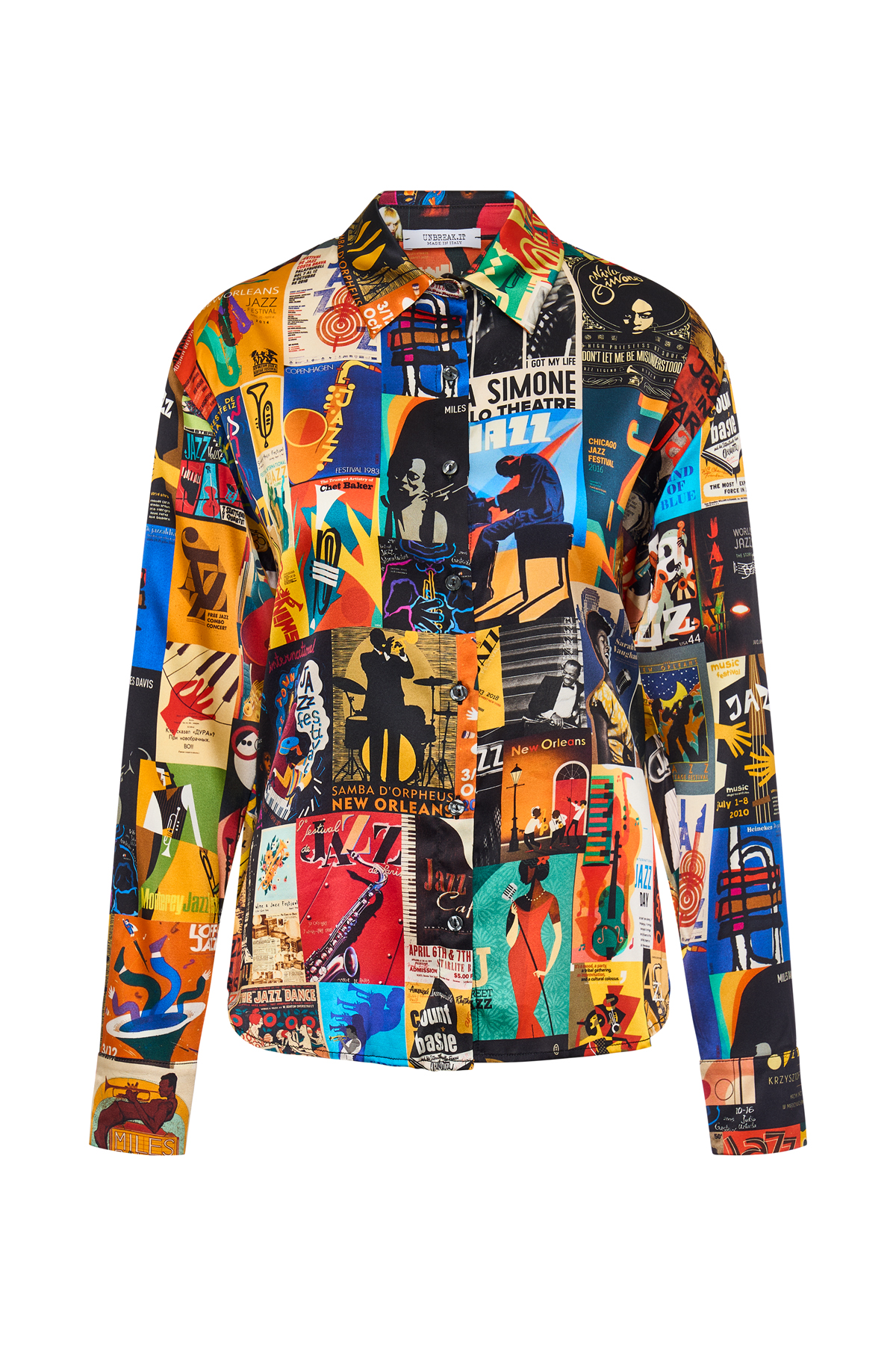 Blouse with a print – Blouse with long sleeves – High neckline with a collar – Regular fit – Made in Italy – Shiny Silk: 90% Silk 10% Elastan