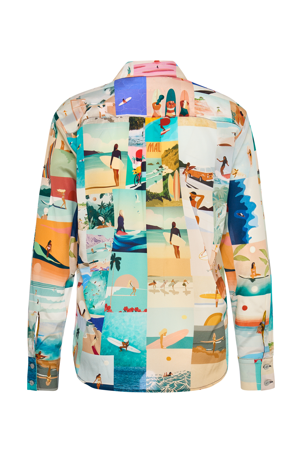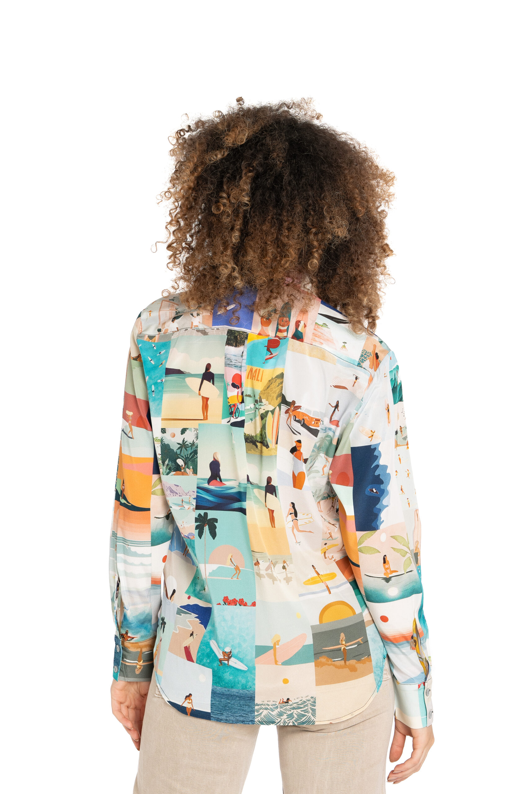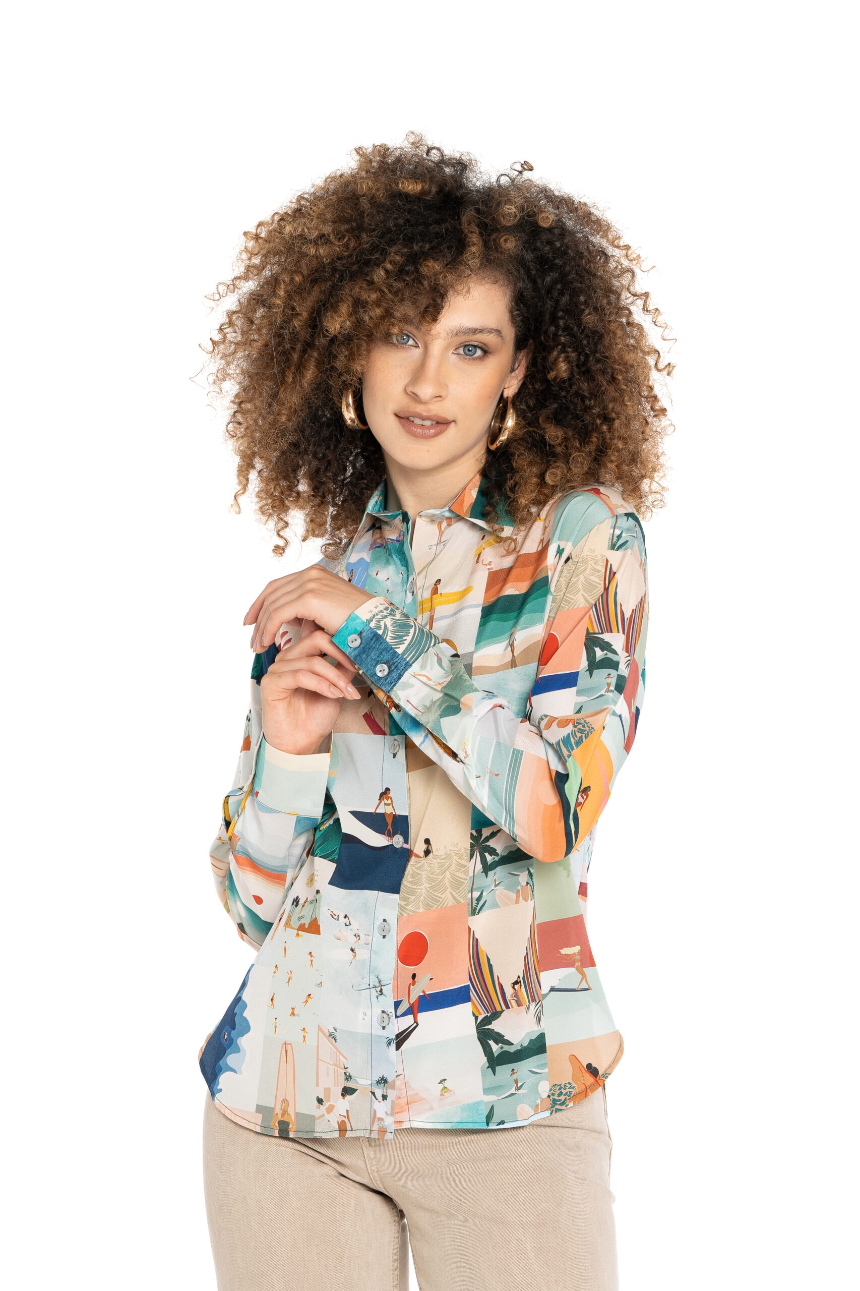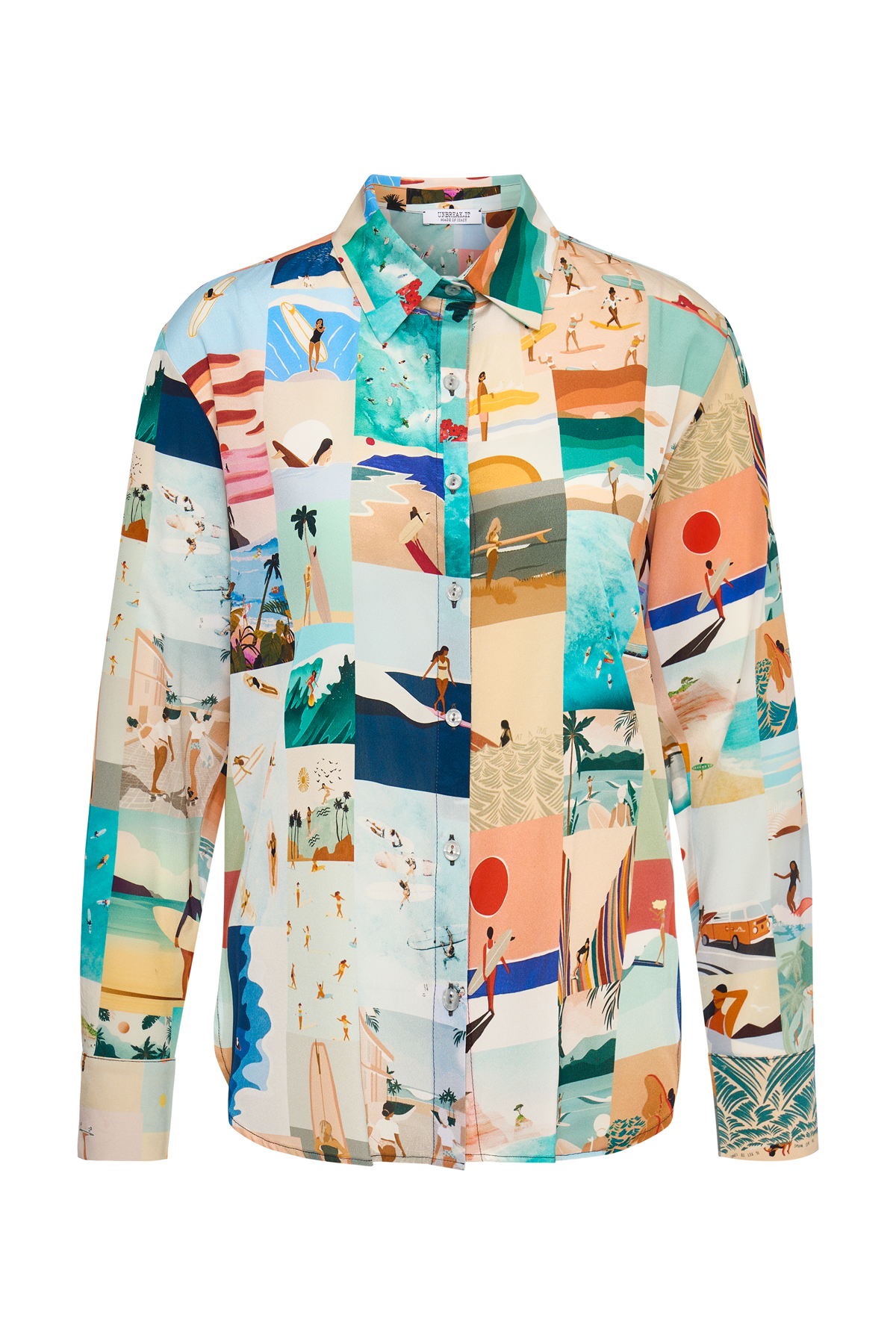 Blouse with a print – Blouse with long sleeves – High neckline with a collar – Regular fit – Made in Italy – Silk: 90% Silk 10% Elastan
