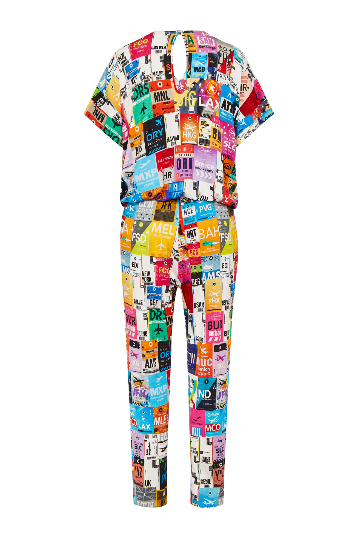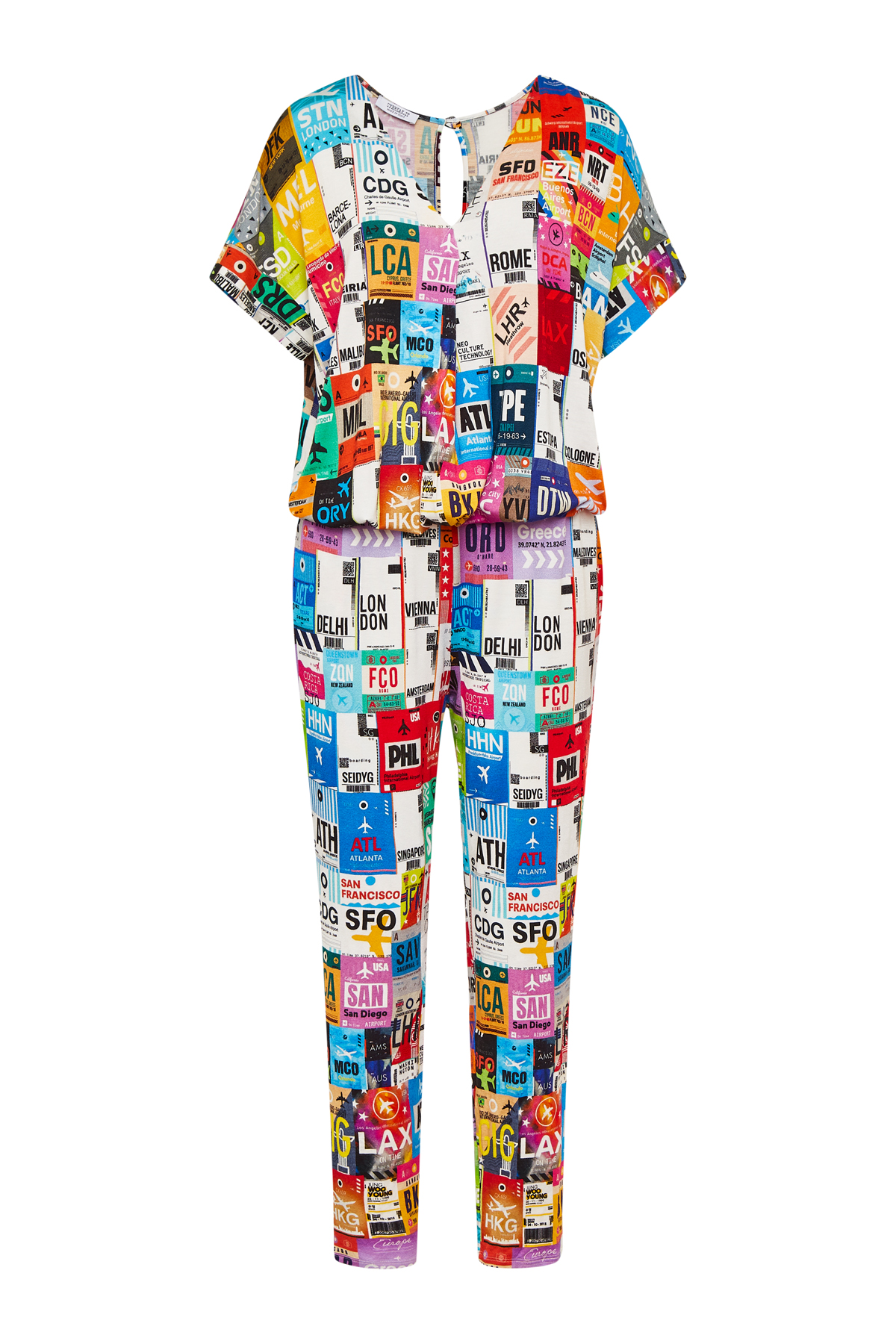 JUMPSUIT WITH A PRINT – Crew neck – Elasticized drawstring waist – Side pockets – Regular fit – Made in Italy – Jersey: 97% Viscose 3% Elastan