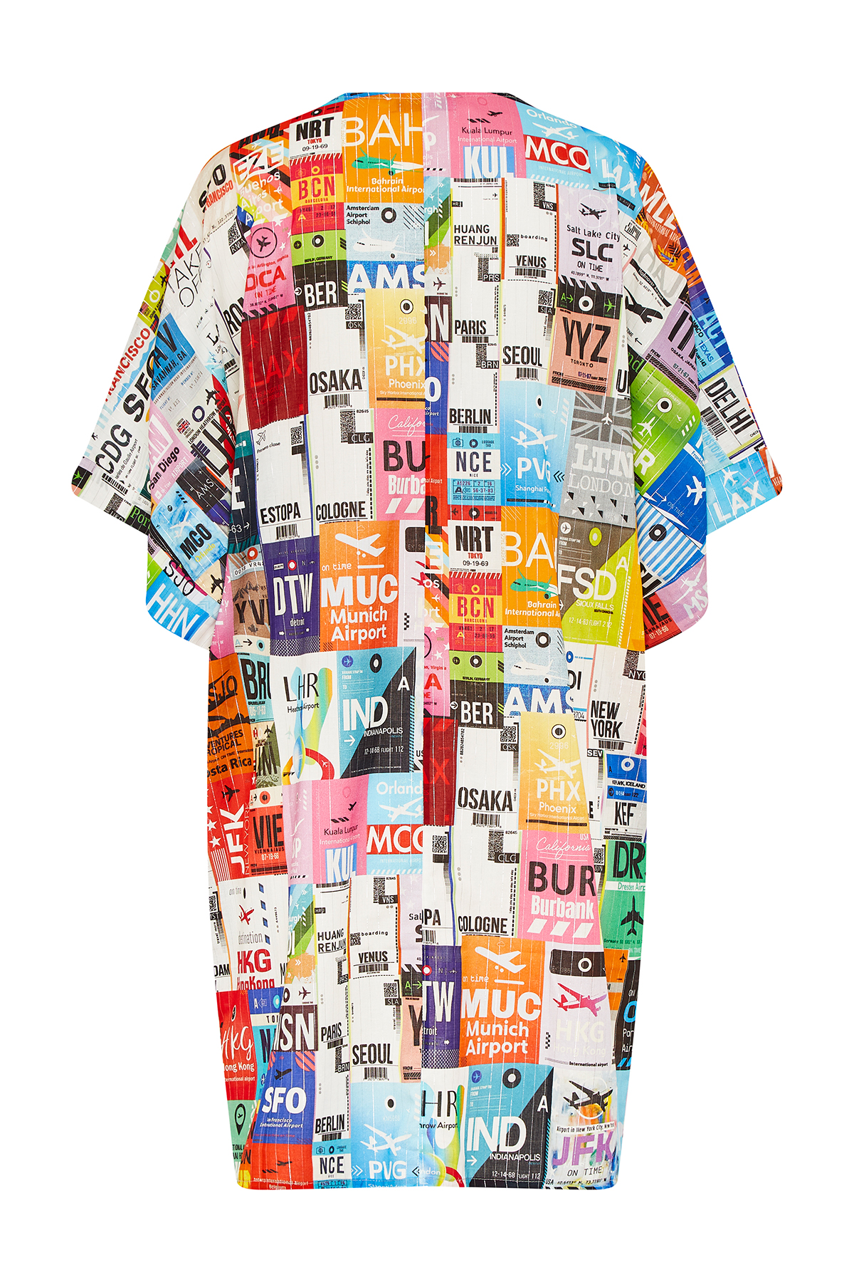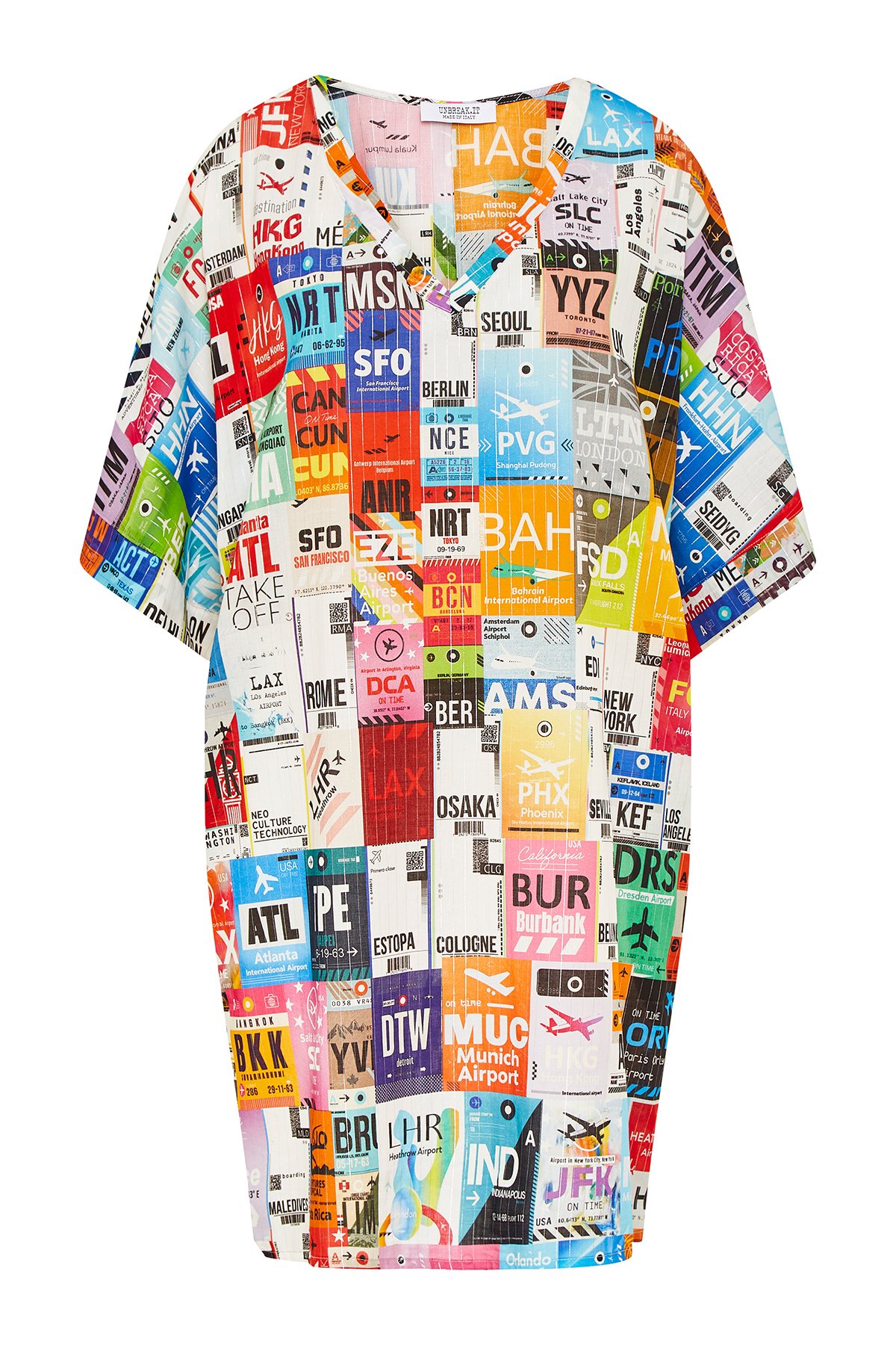 DRESS WITH A PRINT – Round neck – Flared sleeves – Relaxed fit – Two pockets on the side – Made in Italy – Cotton/Lurex: 99% Cotton 1% Polyamid
