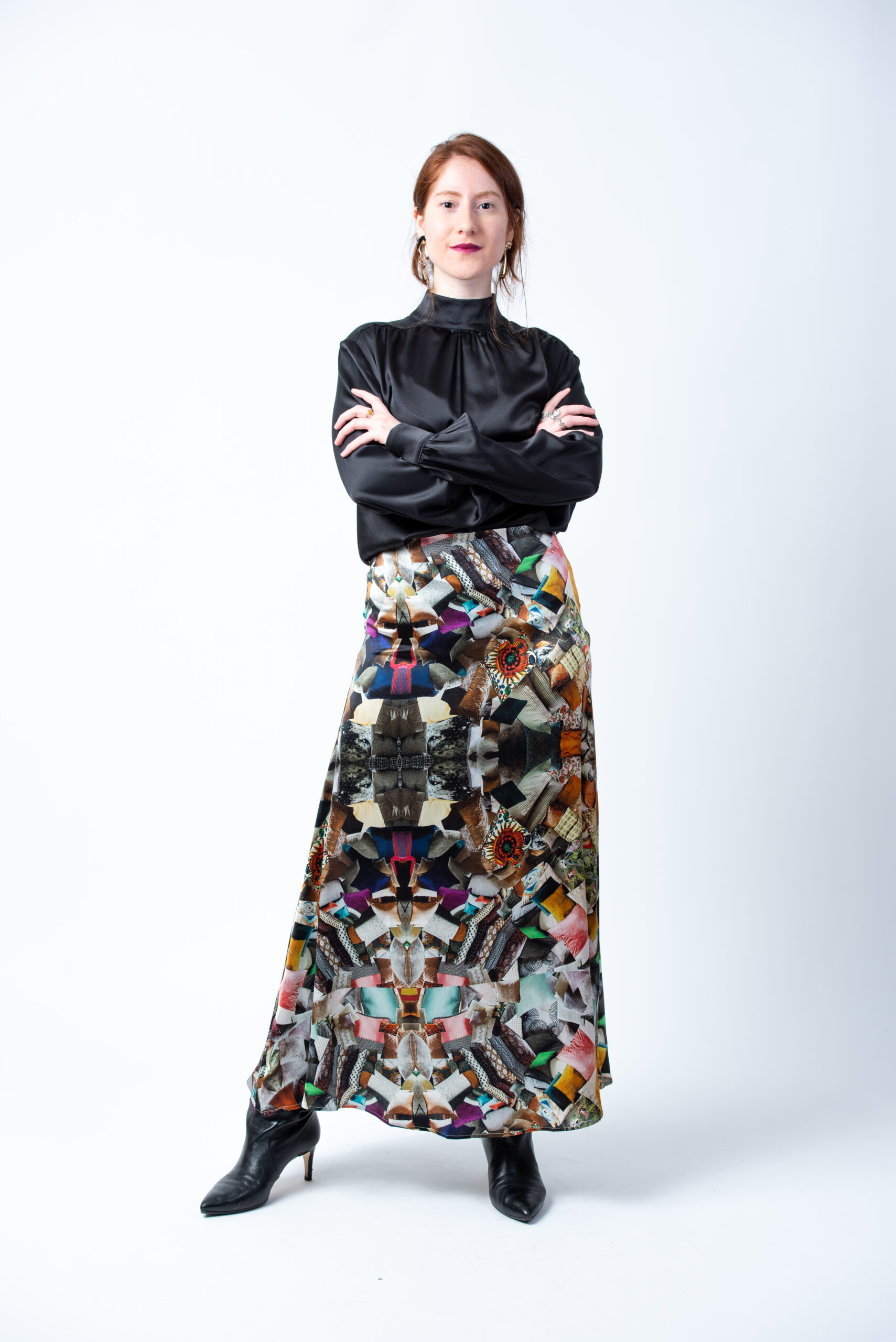 Skirt WITH A PRINT – zipper on the side – long skirt – Made in Italy – Shiny Silk 93% Silk 7% Elastan