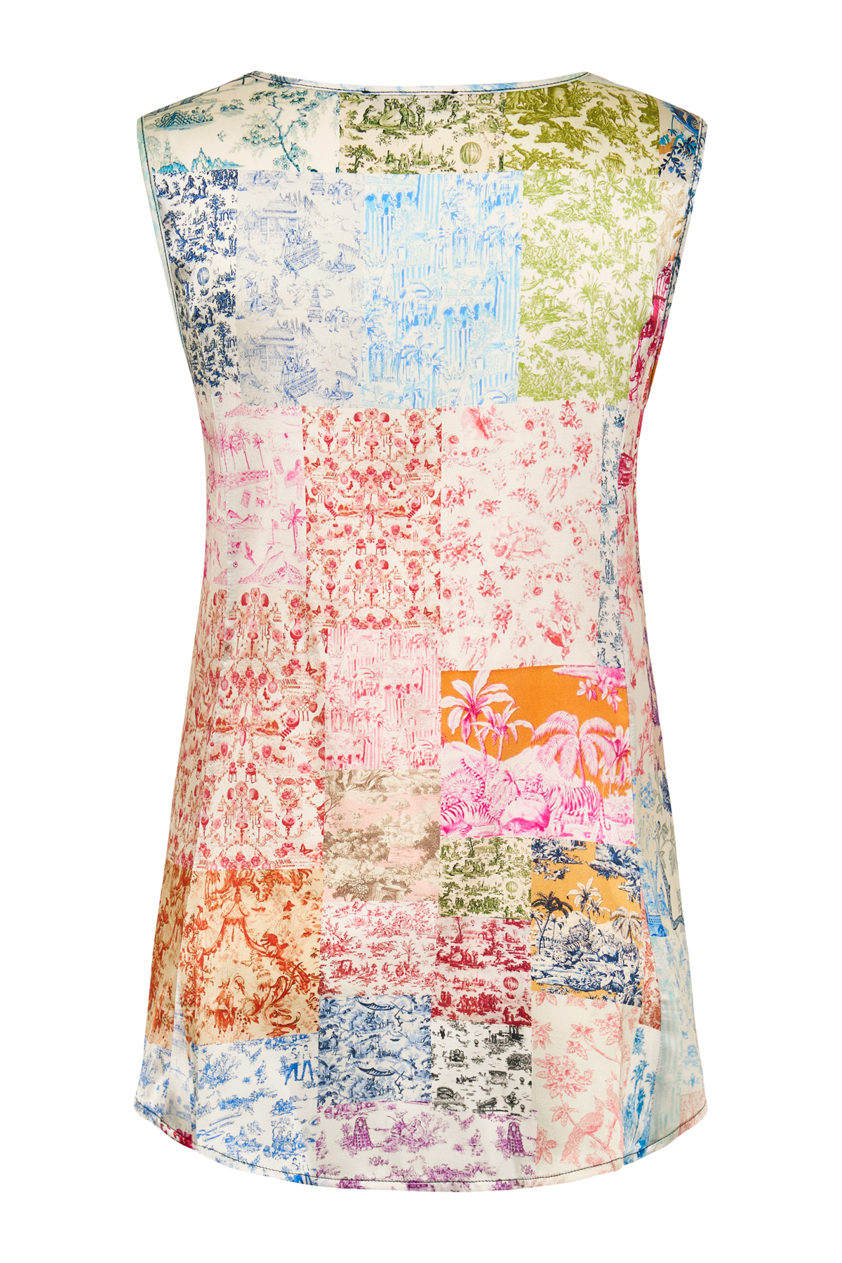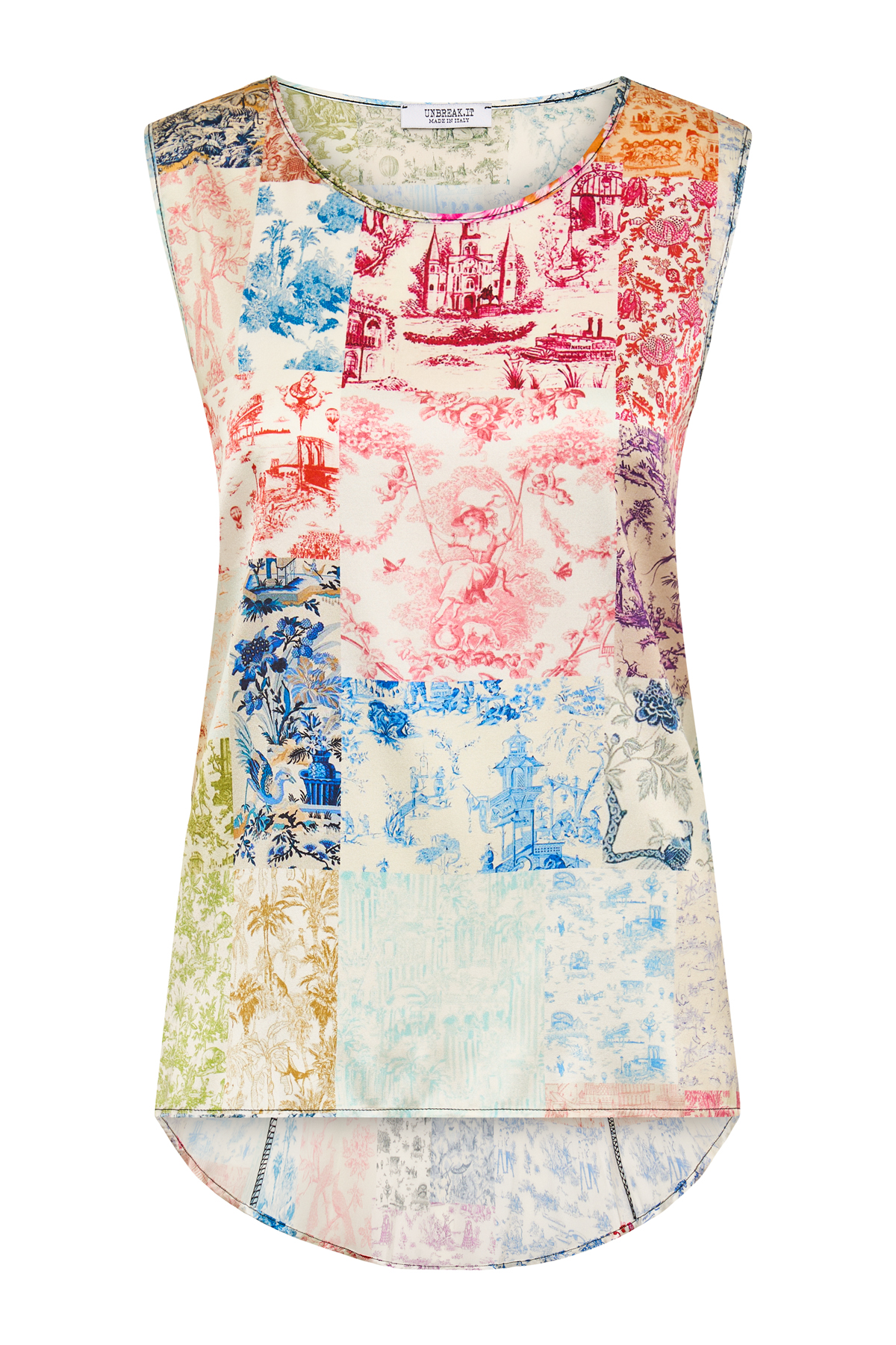 PRINTED SILK TANK-TOP – V-neck top – A-line silhouette – Made in Italy – Shinny Silk: 90% Silk 10% Elastan