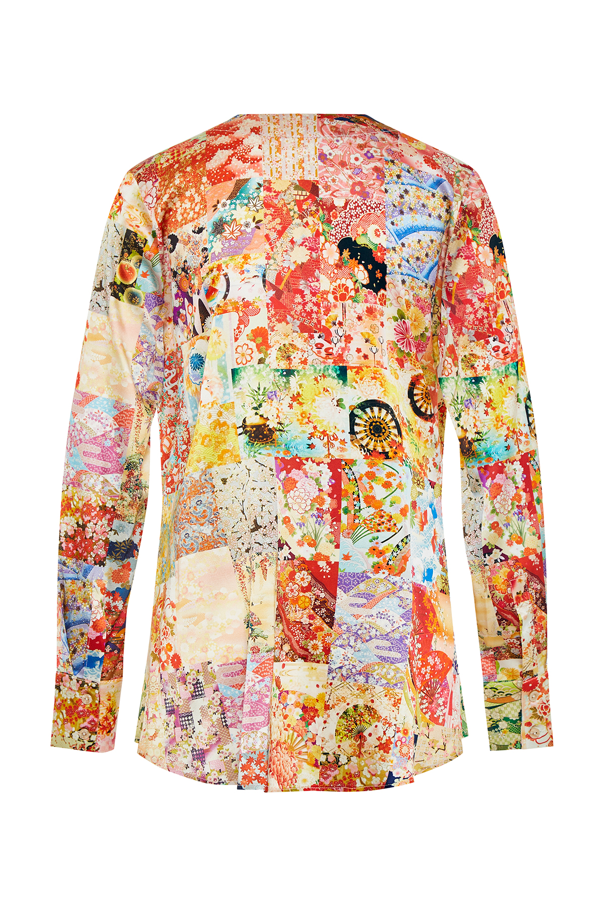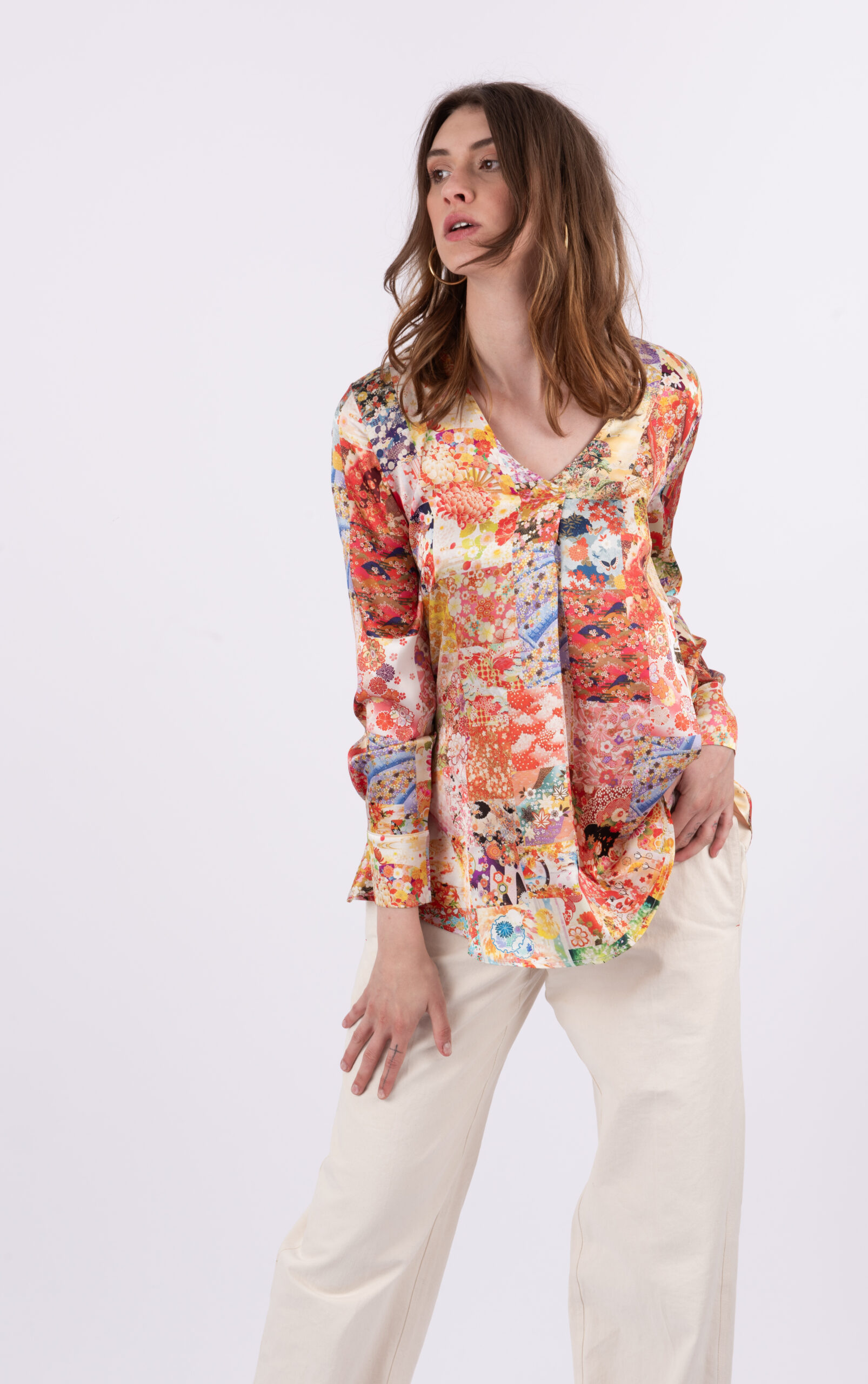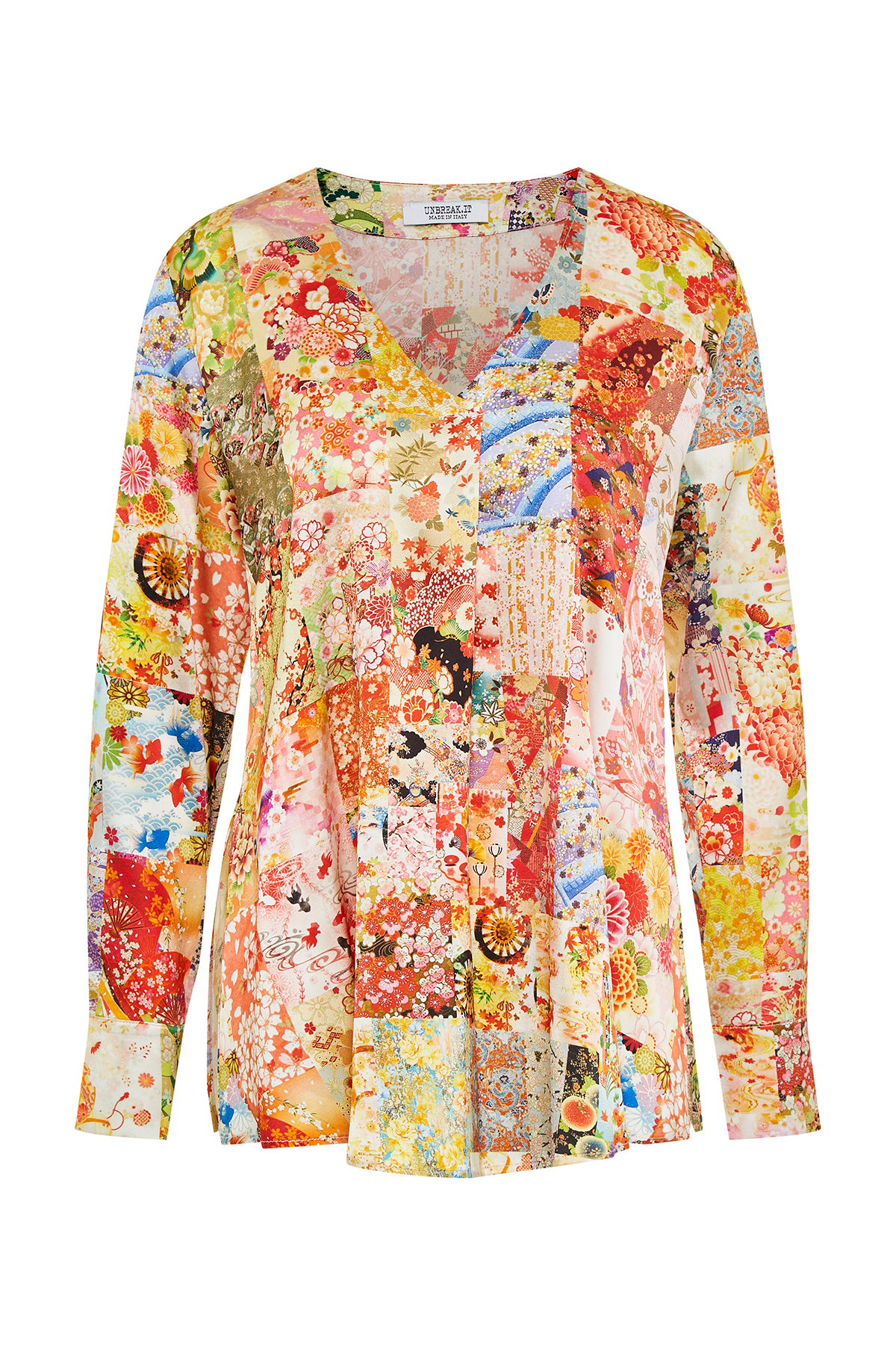 Blouse with a print – Blouse with long sleeves – V-neck – Regular fit – Made in Italy – Shinny Silk: 96% Silk 4% Elastan