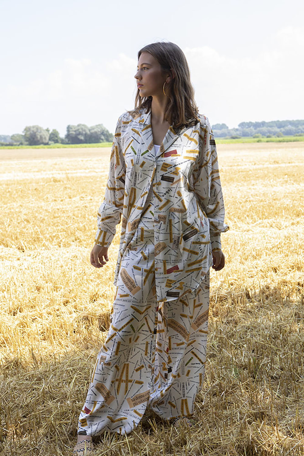 TROUSERS WITH A PRINT – no pockets – Zipper fastening – Made in Italy – 90% Silk 10% Elastan