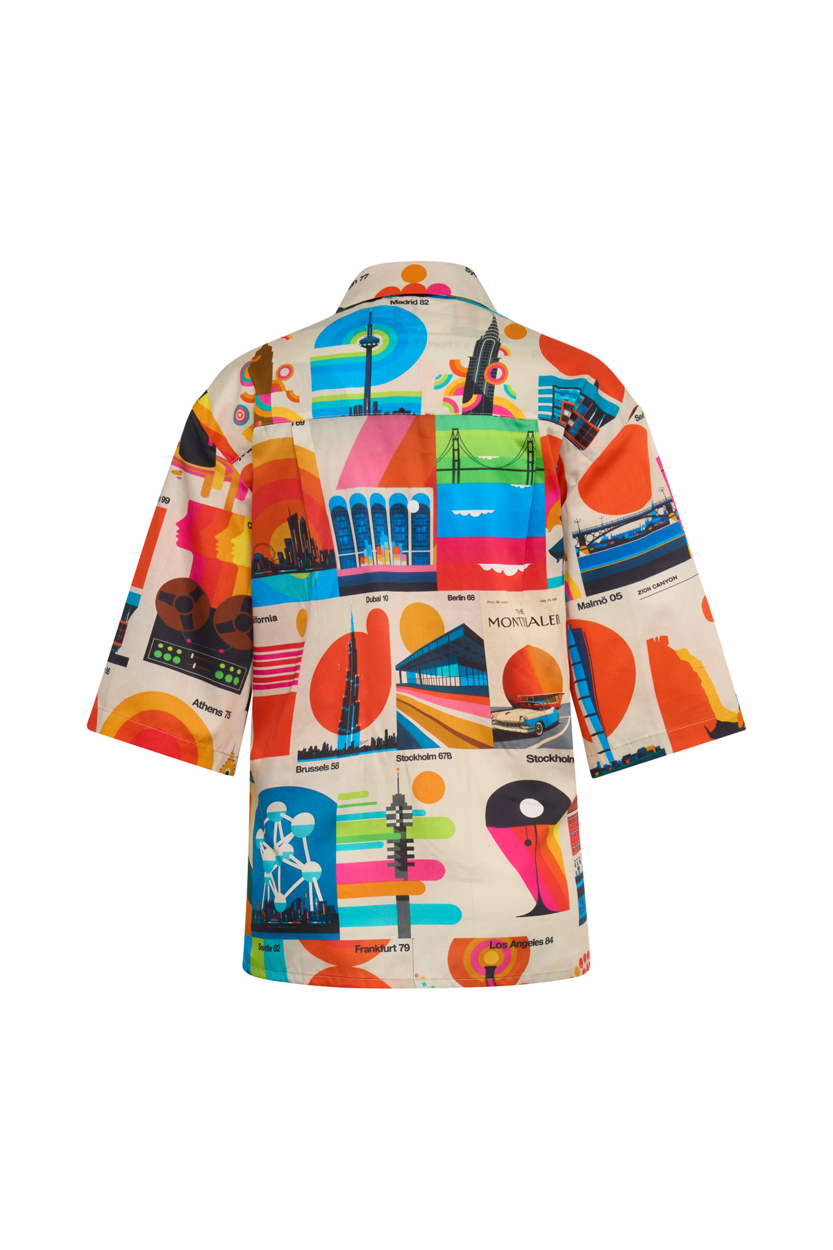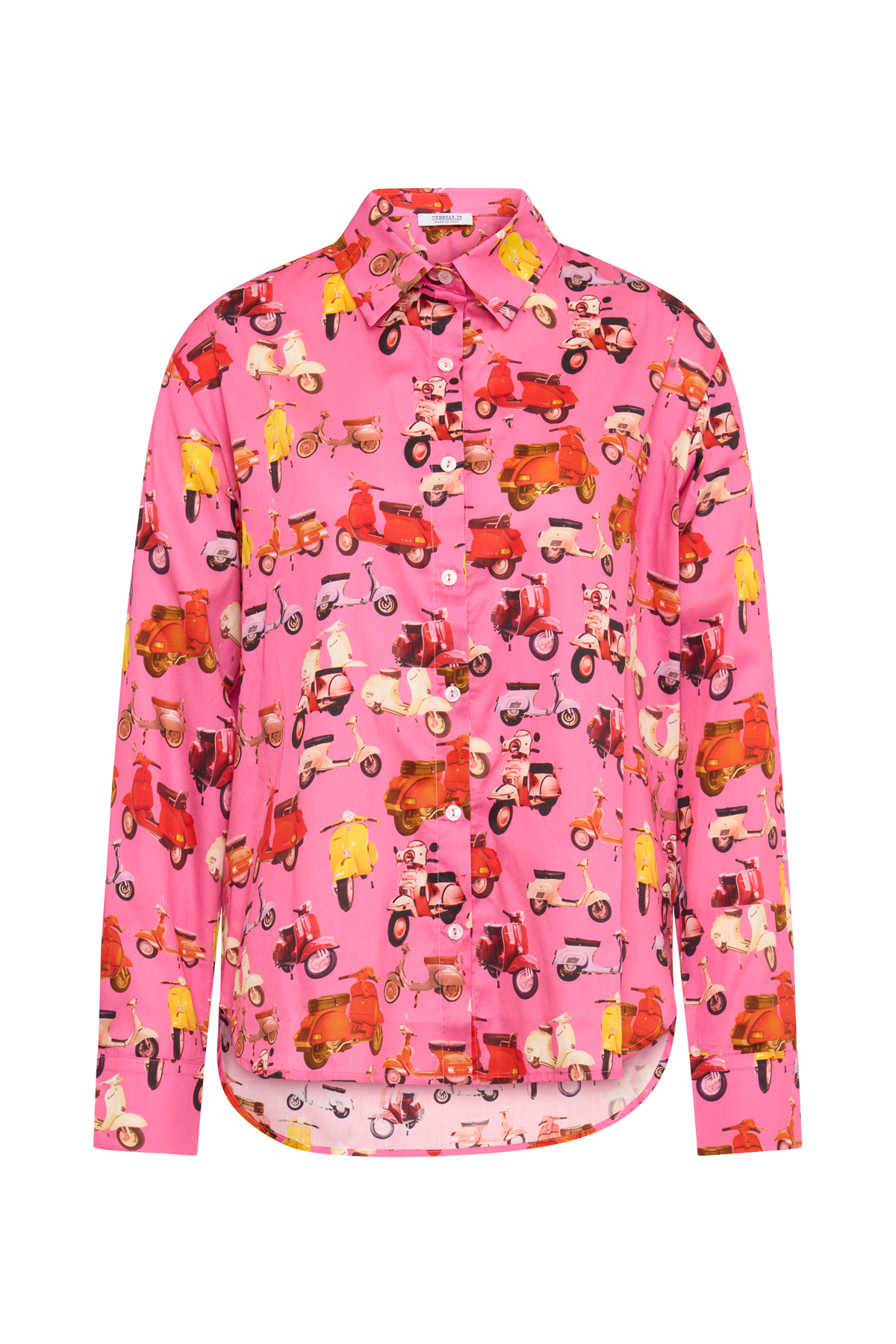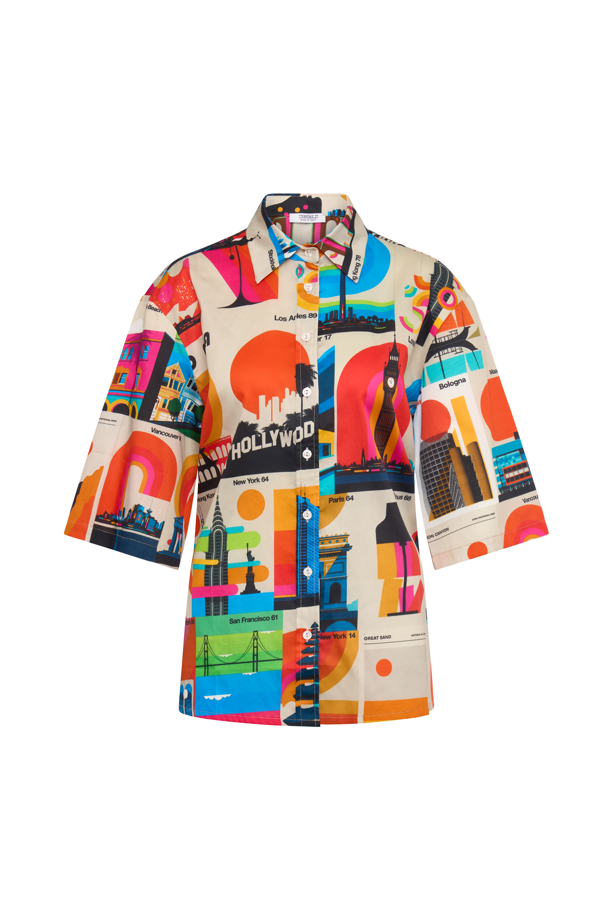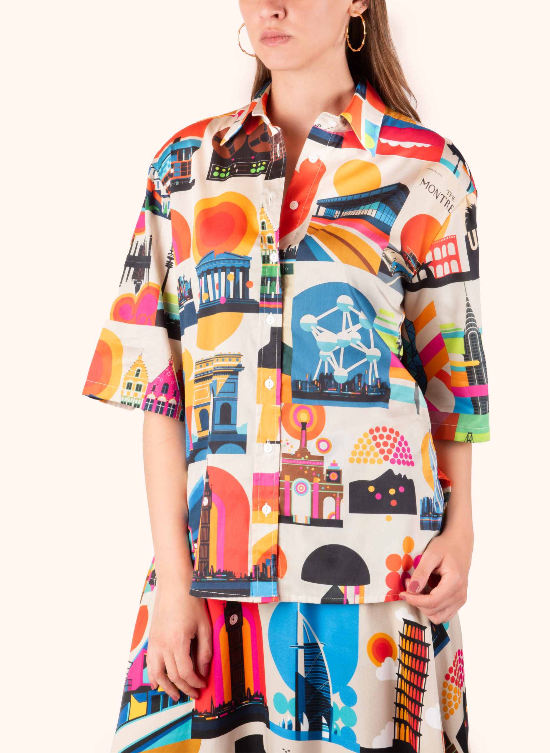 Blouse with a print – Blouse with short sleeves – High neckline with a collar – Sporty fit – Made in Italy – Cotton 100%