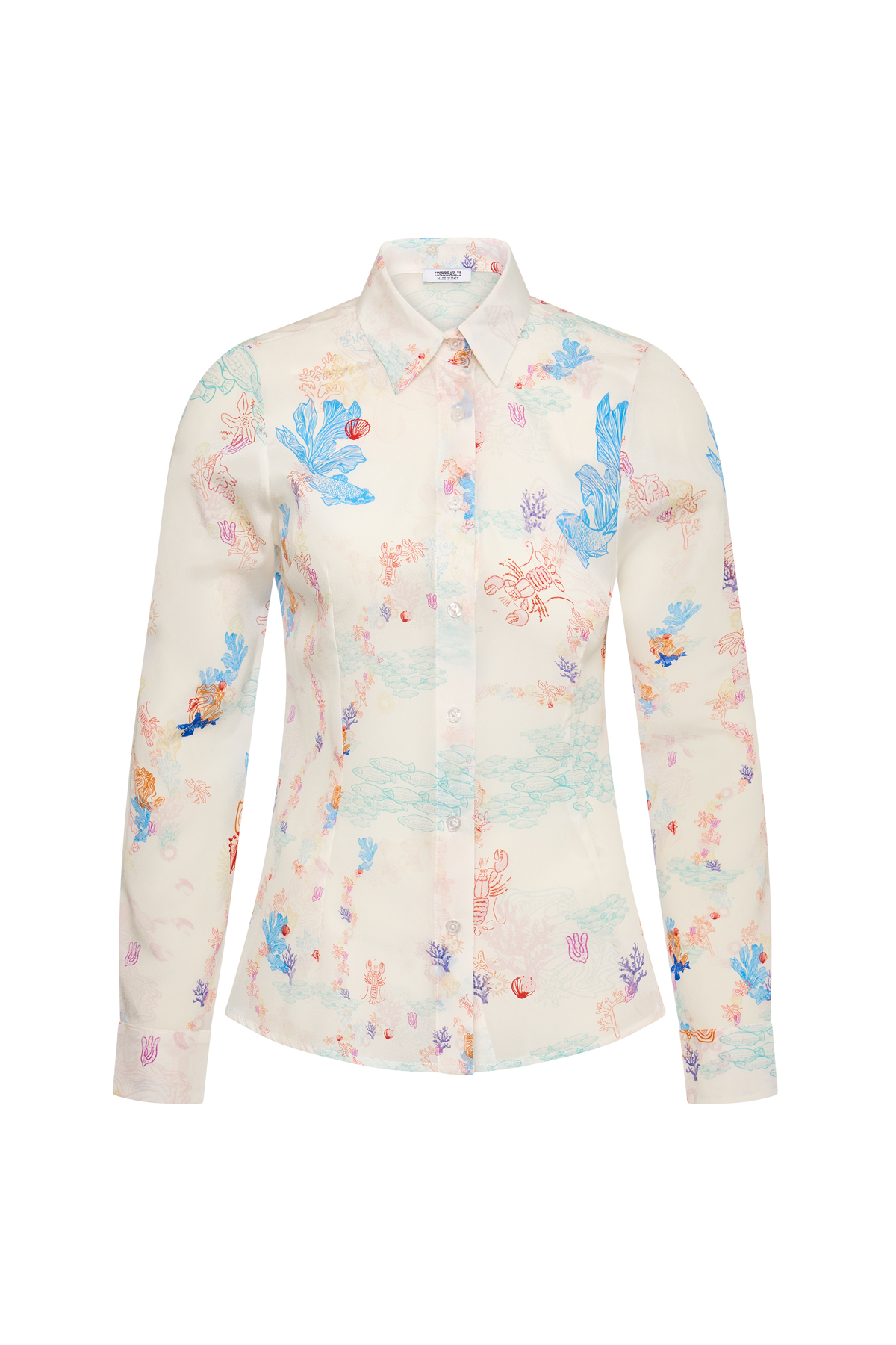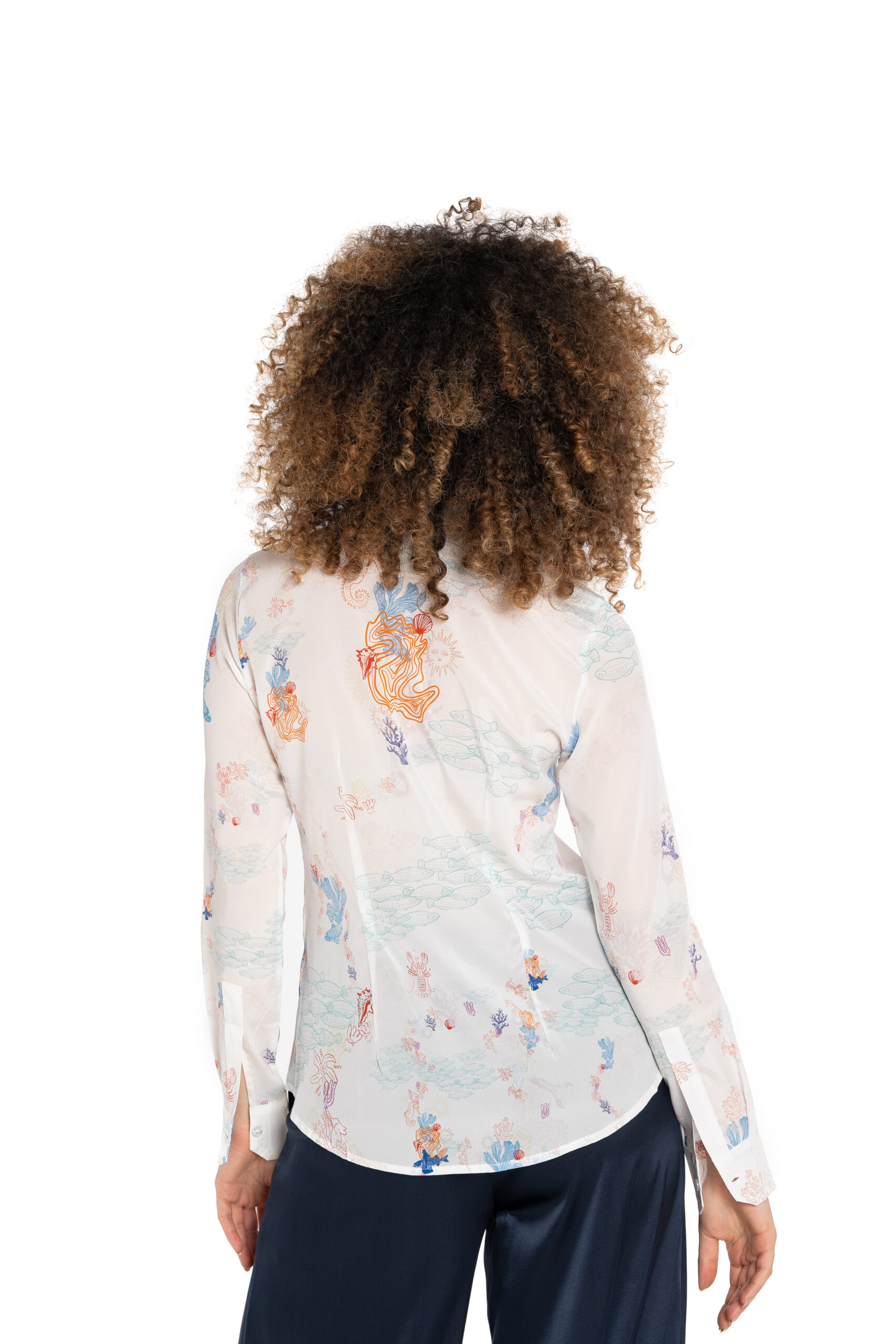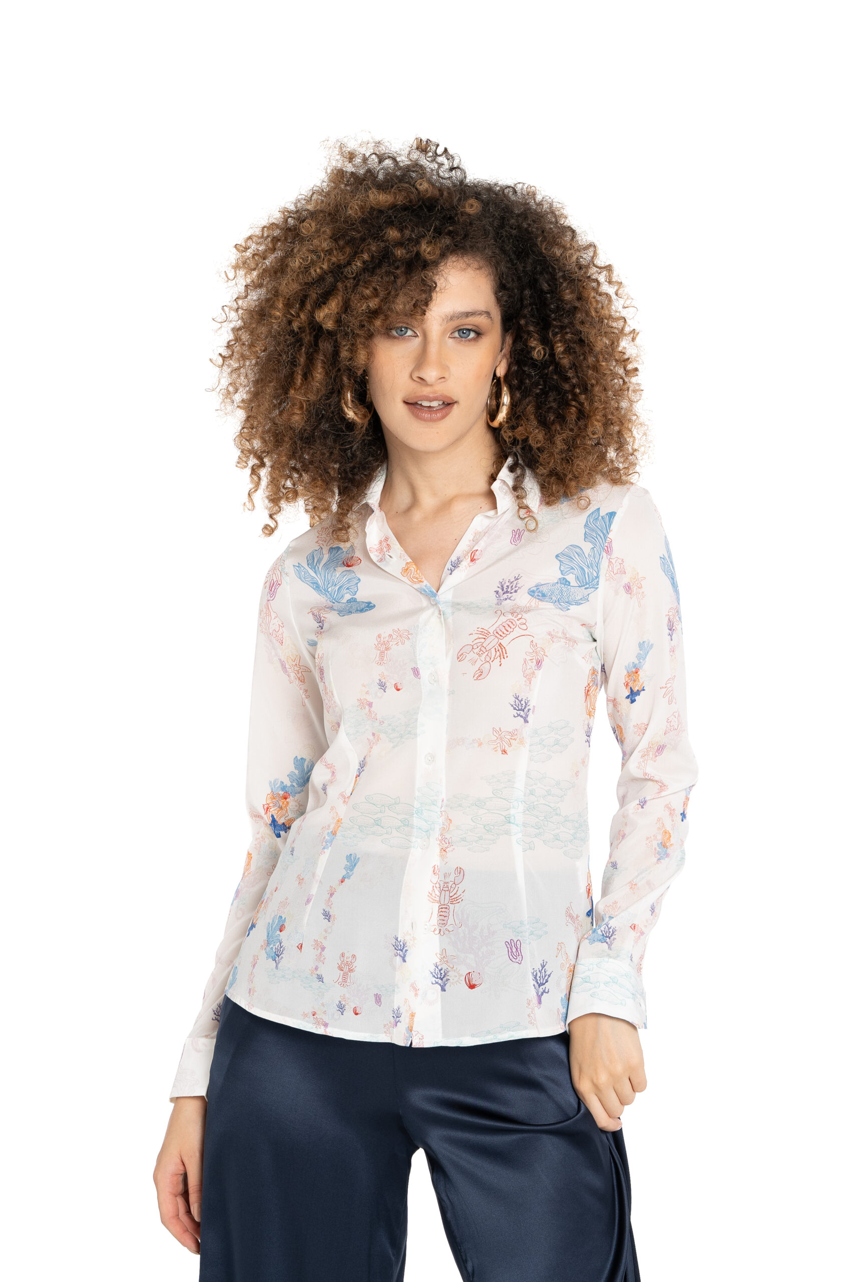 Blouse with a print – Blouse with long sleeves – High neckline with a collar – Regular fit – Made in Italy – Silk: 93% Silk 7% Elastan