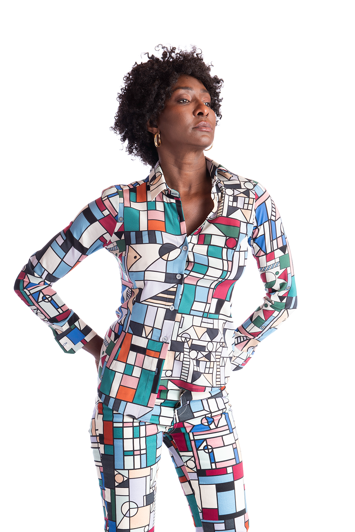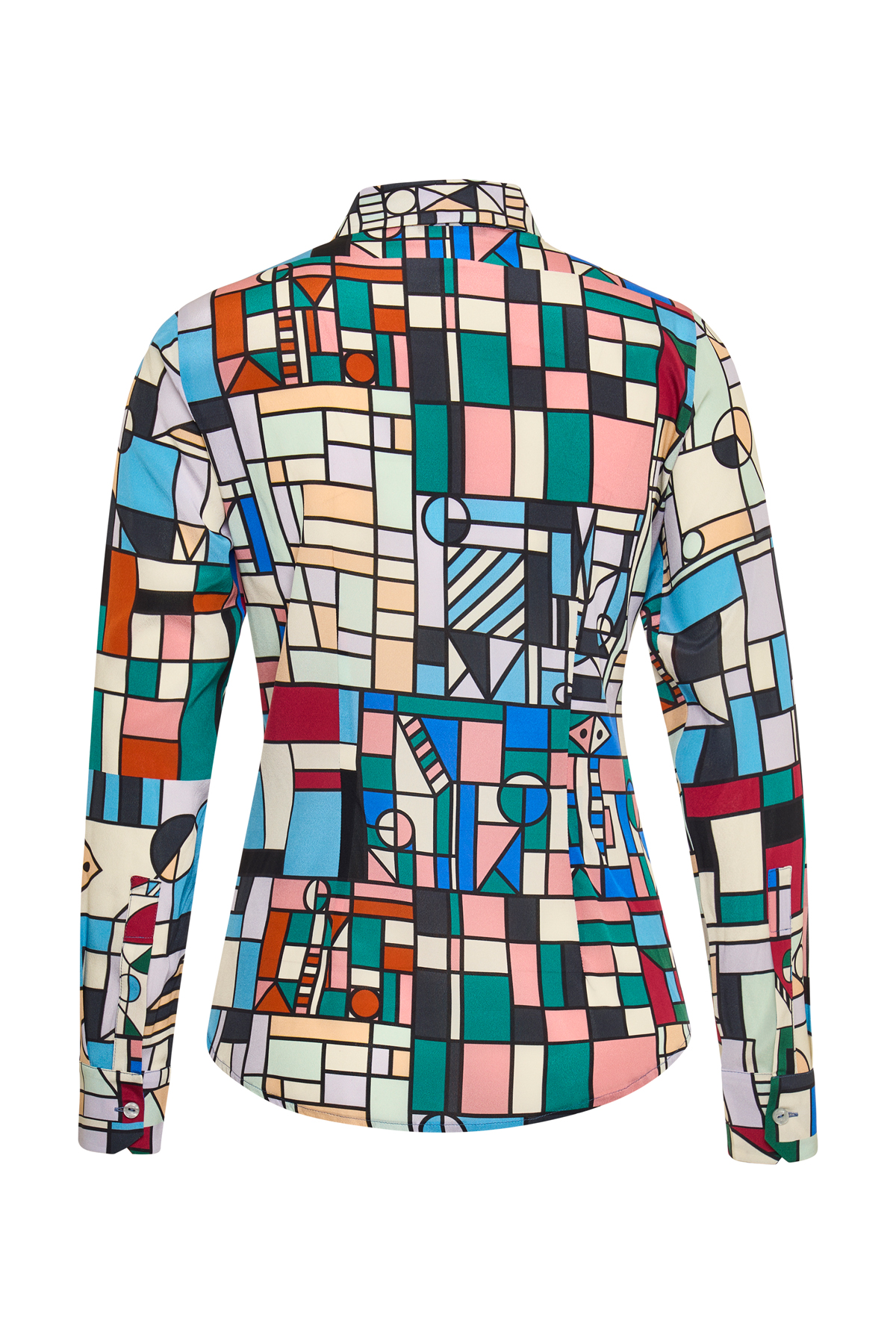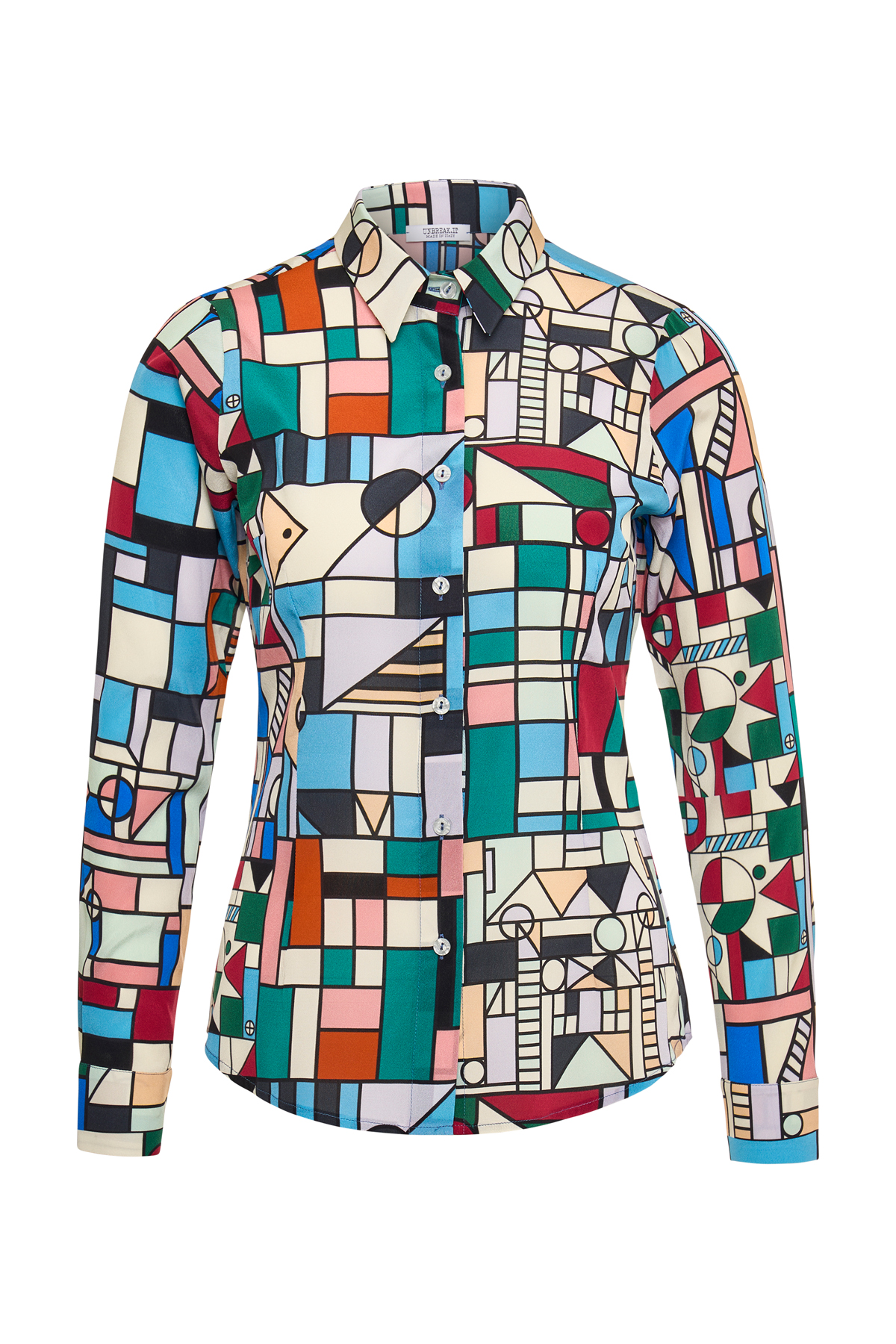 Blouse with a print – Blouse with long sleeves – High neckline with a collar – Regular fit – Made in Italy – Silk: 93% Silk 7% Elastan