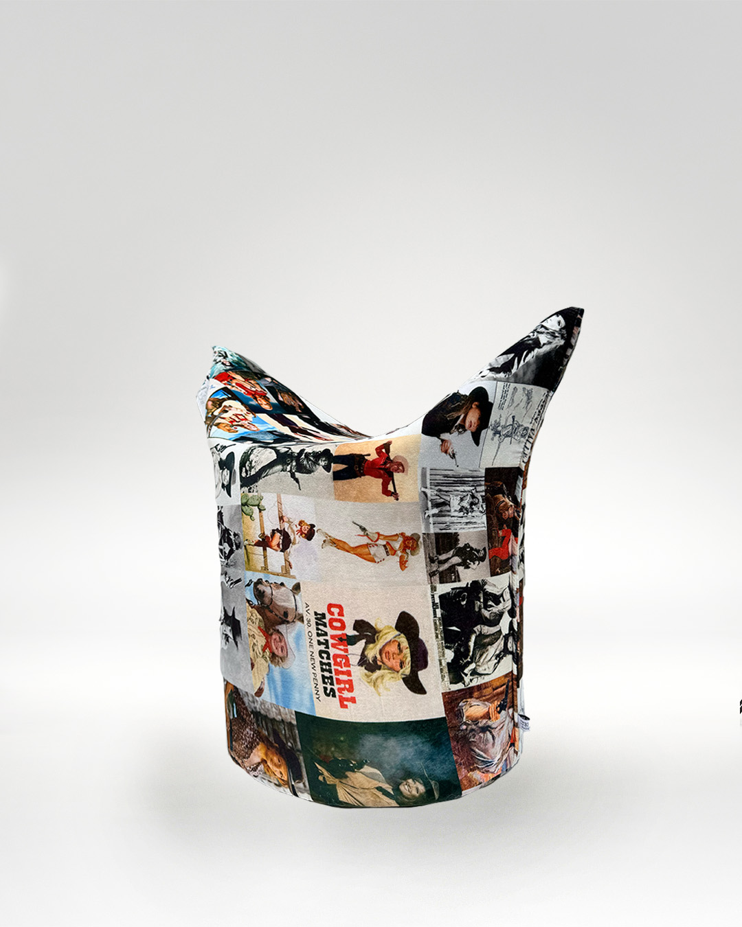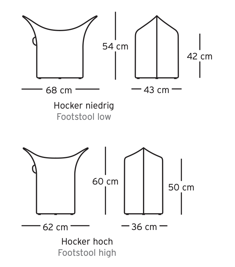 LOW STOOL WITH A PRINT – Seat depth: 42 cm – Seat: Layer of foam covered with Velour (100 % polyester). With useful handle. – Frame: Hard foam reinforced with wooden panel. – Made In Germany