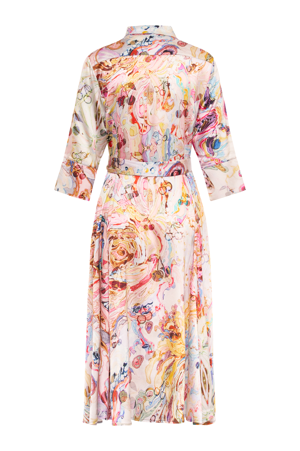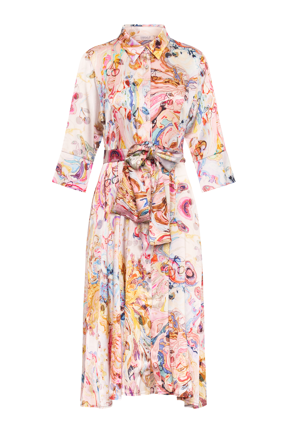 Dress with a Print – Midi dress – Regular fit – Soft and light material – Button details in the front – Two pockets on the side – With a matching belt – Made in Italy – Shinny Silk: 90% Silk 10% Elastan